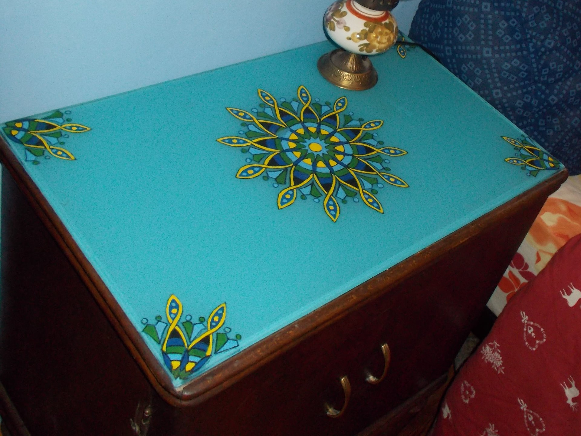 ho fatto anche un mandala su vetro come sopra comodino...ecco la foto: